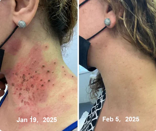 "After 15 years of steroid creams that only made my psoriasis worse, I was ready to give up. Day 4 with BeeRx™, the constant itching finally stopped. Within 2 weeks, the angry red patches started fading. Now at 6 weeks, you'd never know I had psoriasis. This saved my life."